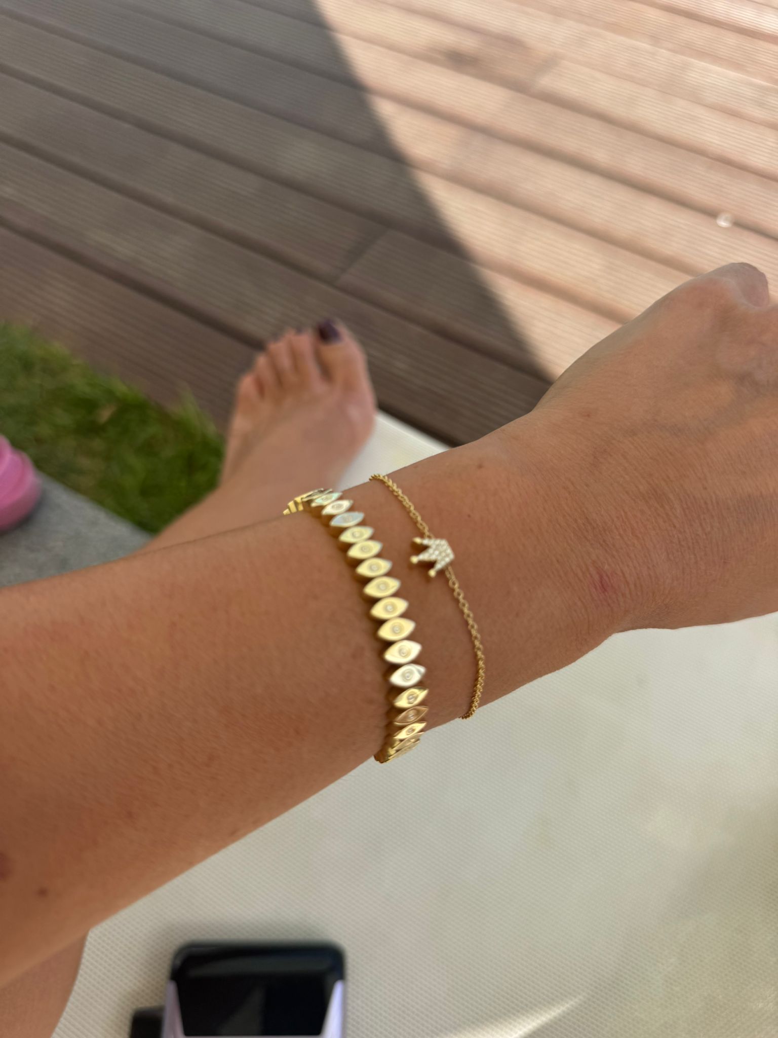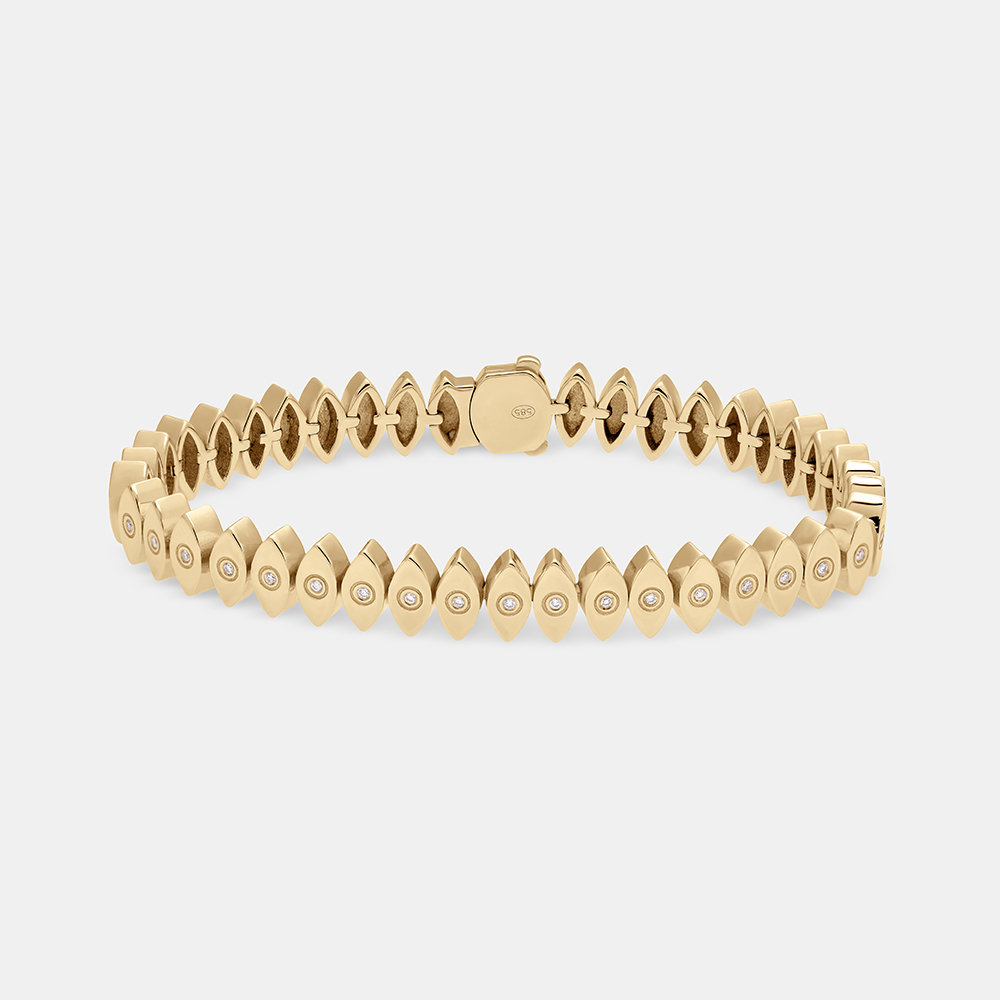 The Eyes bracelet features a delicate sequence of protective eyes,