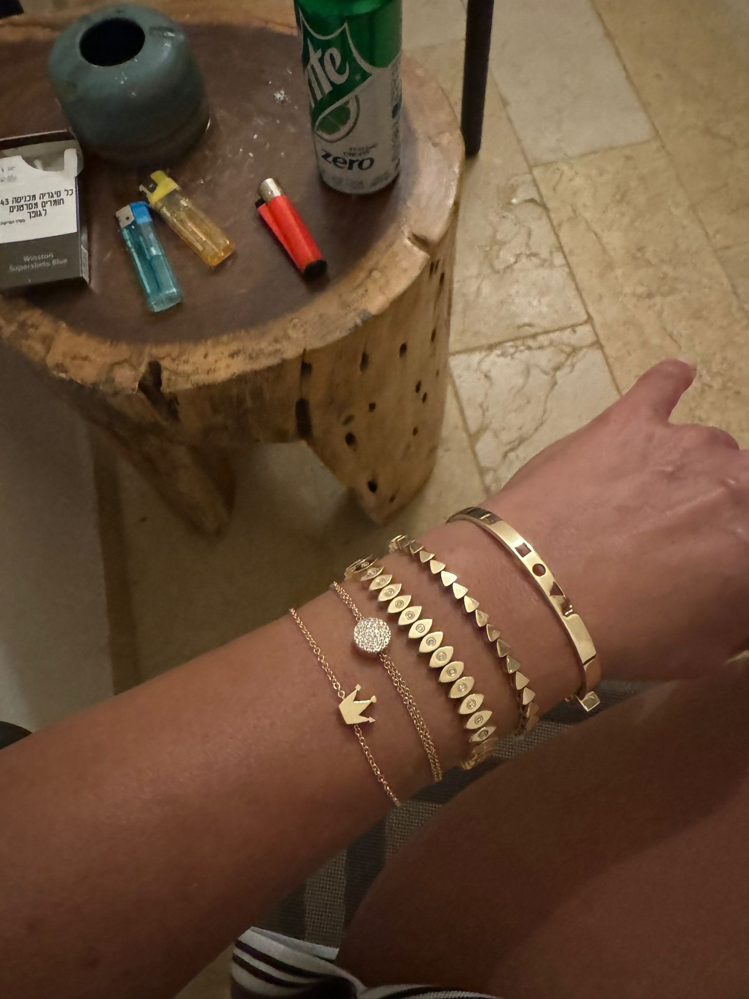 Each element is carefully placed to create a harmonious rhythm around the wrist,